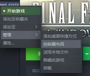 第一步:首先開啟Steam庫,右鍵最終幻想15,在電腦已經連線手柄的情況下,點選控制器佈局。