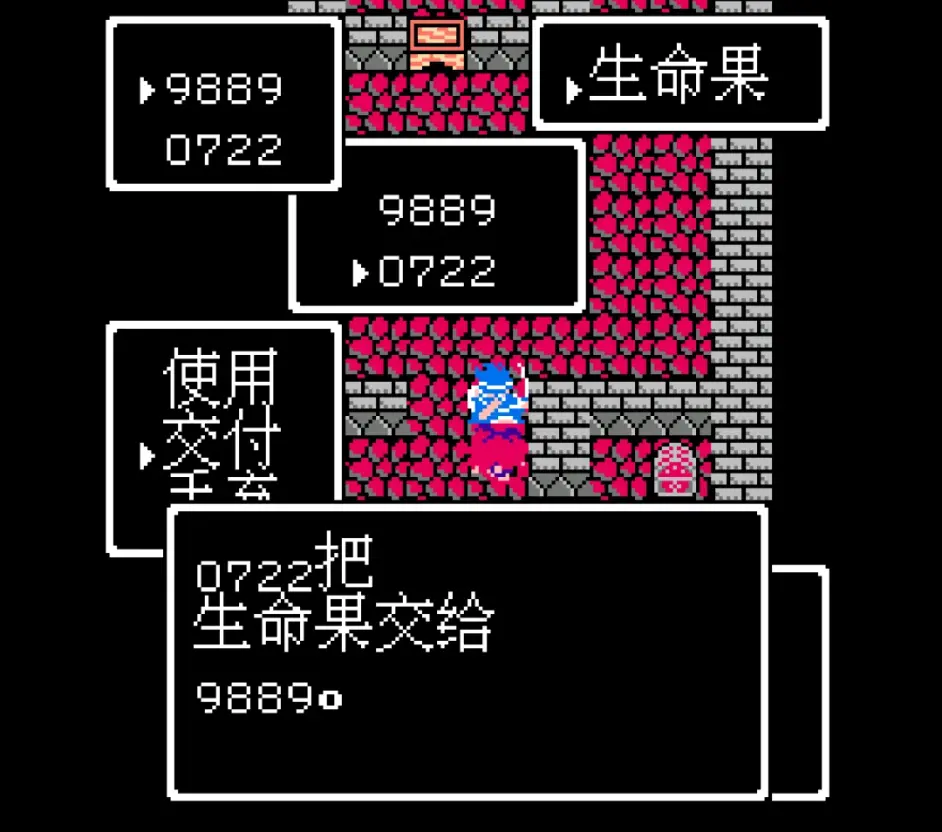 複製道具大法《勇者鬥惡龍3》的複製道具大法已經在網上傳了二十多年,不過由於網際網路資訊更迭,現在想找到關於這個BUG的確切使用教程並不容易。FC版《勇者鬥惡龍3》的複製大法有很多種,原理都十分相似,主要利用初始城鎮的酒吧、拉希魯(爾)的勇氣神殿以及敵人的“逐放”技能,今天小雷給大家講一種可以穩定復現的方法。