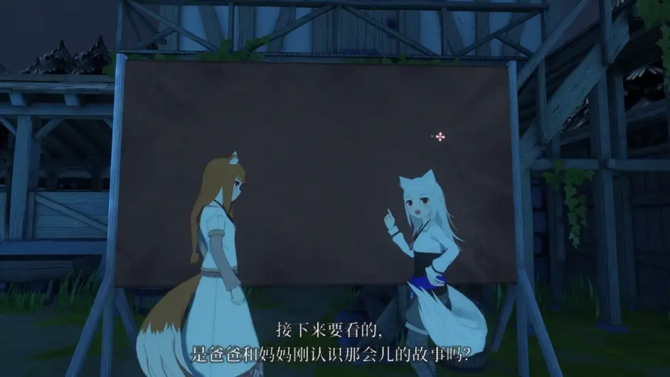 相較於前作,《狼與香辛料VR2》在流程長度上有所增加,並且取消了幕間的分割讓故事節奏上更加流暢,也更具有整體性。在本作中加入的陪老婆和女兒看露天電影回憶往昔的玩法也讓人眼前一亮,一方面這種溫馨的家庭場景讓任何人都毫無抵抗力,另一方面也通過這種方式對《狼與香辛料》的早期劇情進行了簡單介紹,讓那些單純被遊戲吸引來的同學也能瞭解前塵過往,從而激發起對原作的興趣。