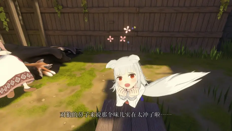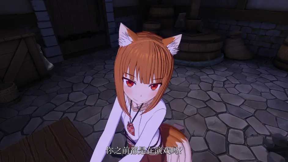 就玩法來說,《狼與香辛料VR》還是比較傳統的。SpicyTails當然非常清楚受眾們到底想要的是什麼——畢竟對本作感興趣的玩家和原作粉絲群體是高度重合的,因此站在大多數最終購買者的角度,能圍觀羅倫斯和赫蘿倆人的甜蜜互動就已經足夠了,而能參與到這種互動中那已經算是意外之喜了。也就是說玩家在流程中的大部分時間都是在津津有味的看劇情,而您所持有的VR裝置可以幫助您實現摸摸赫蘿的頭啊、尾巴啊什麼的,增加些許的沉浸感。