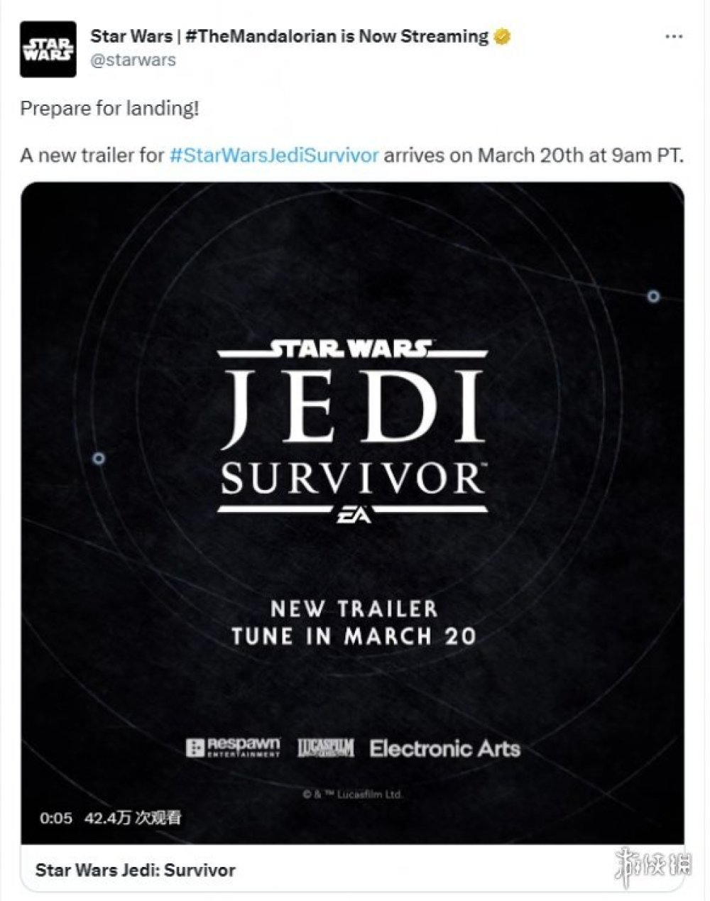 《星球大戰絕地:倖存者》官推宣佈,本作新的預告將於太平洋時間3月20日早上9點(北京時間3月21日0點)公佈新的預告。
