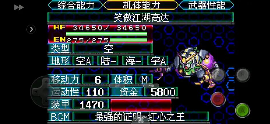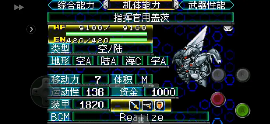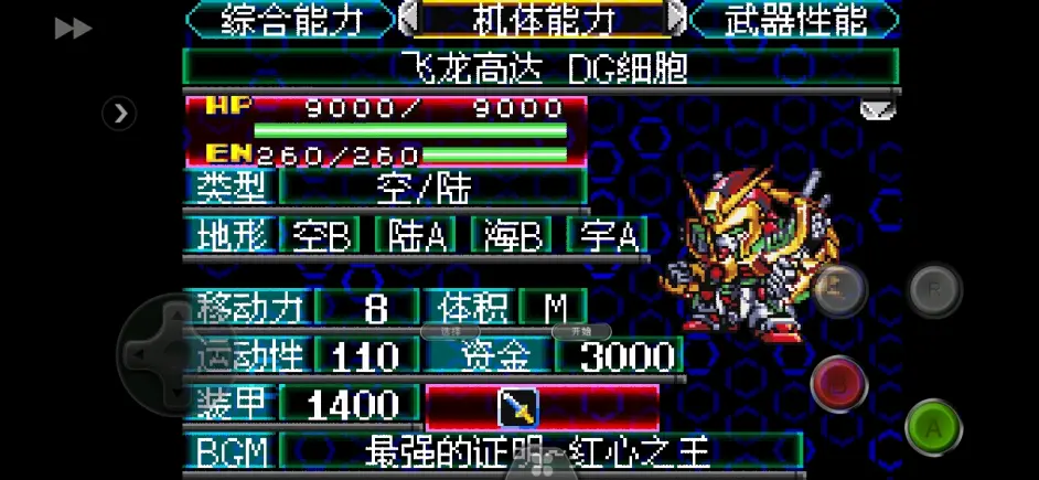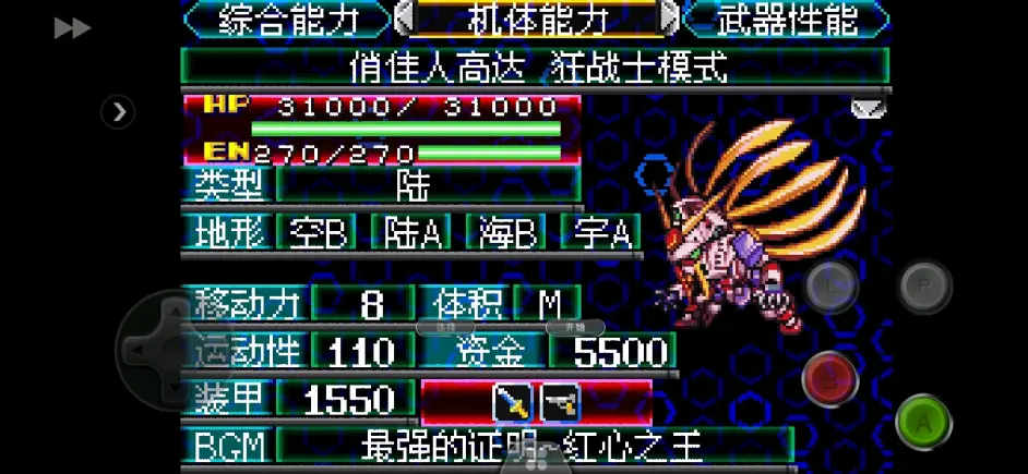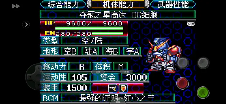 在第10話初登場。每回合回覆30%的HP和EN,還是比較變態的。攻擊和防禦都比較低