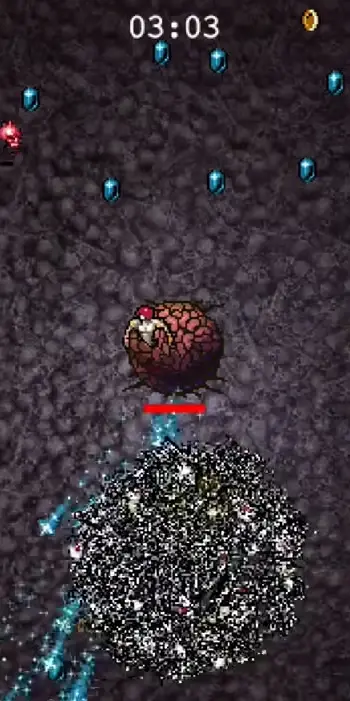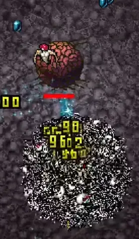 有寶箱就撿,可以環繞骨球撿經驗,會變成導彈攻擊骨球,但注意千萬別碰到骨球,骨球攻擊力很高,碰到很快就死了。