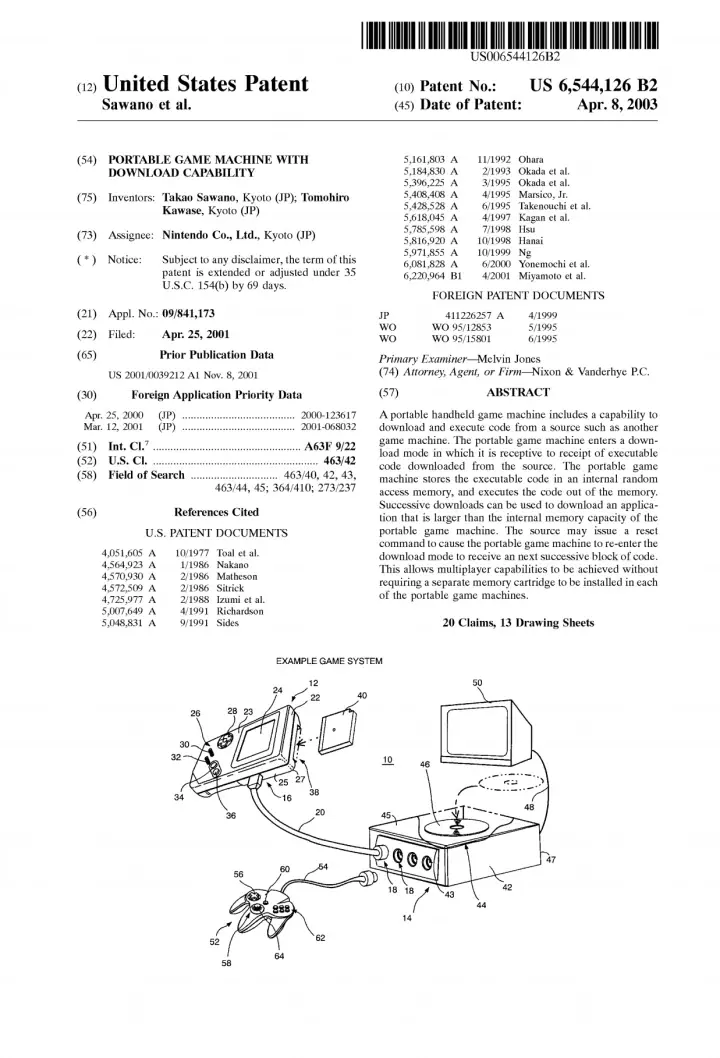 根據GreyB專利分析諮詢公司的專業報告,US6375572B1 是任天堂專利組合中最受歡迎的專利。在該報告統計的2022年初,任天堂已經受到了來自索尼、華為和微軟等公司的520次引用。