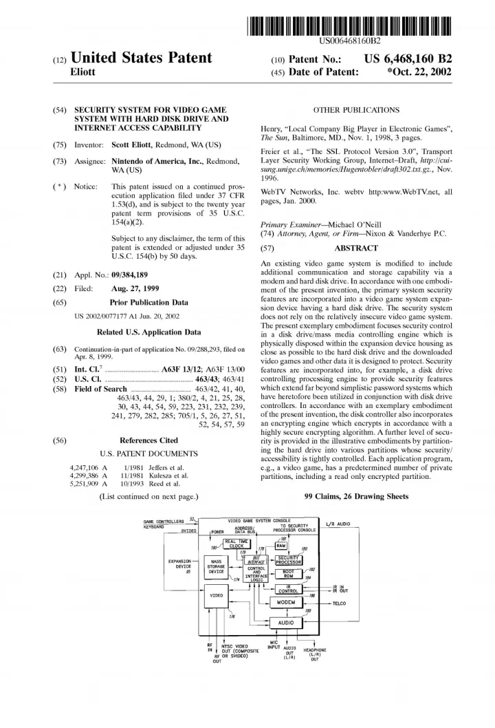 專利主要內容:關於一種具有硬碟驅動器和網際網路接入能力的視訊遊戲系統的安全系統。這種安全系統可以保護視訊遊戲系統中下載的遊戲或其他資料不被非法複製或訪問。這種安全系統使得每個下載的遊戲或其他資料都有一個唯一的識別碼,用於與視訊遊戲系統和磁碟控制處理引擎進行通訊和驗證。當使用者想要執行一個下載的遊戲或其他資料時,必須通過磁碟控制處理引擎進行解密和認證,否則無法執行。