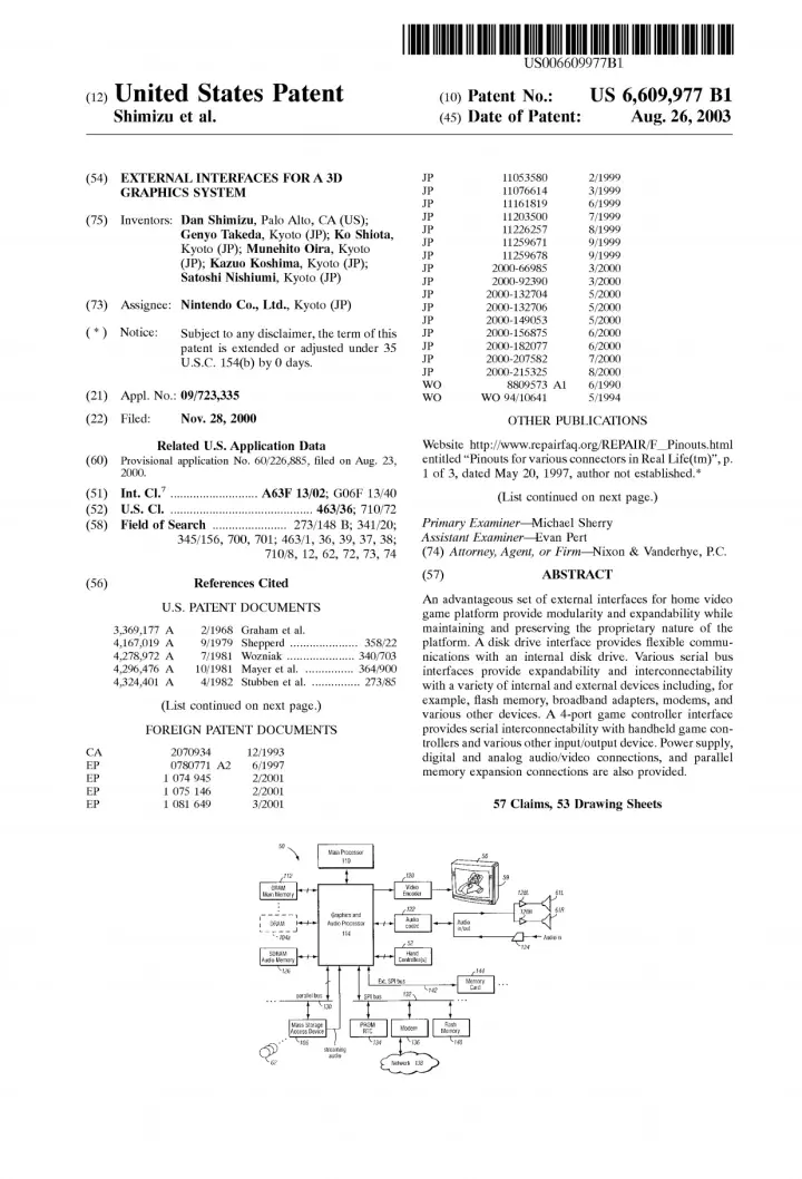 US6375572B1任天堂 US6375572B1 號專利曾被微軟、索尼、科樂美、摩托羅拉、蘋果等公司引用。