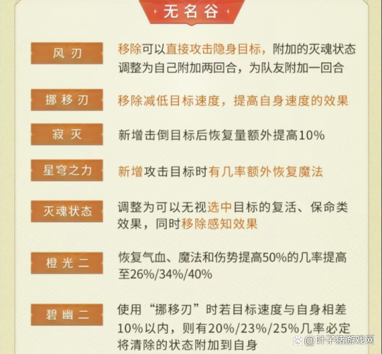 核心改動內容:風刃滅魂印不給感知,挪移刃無法偷速度