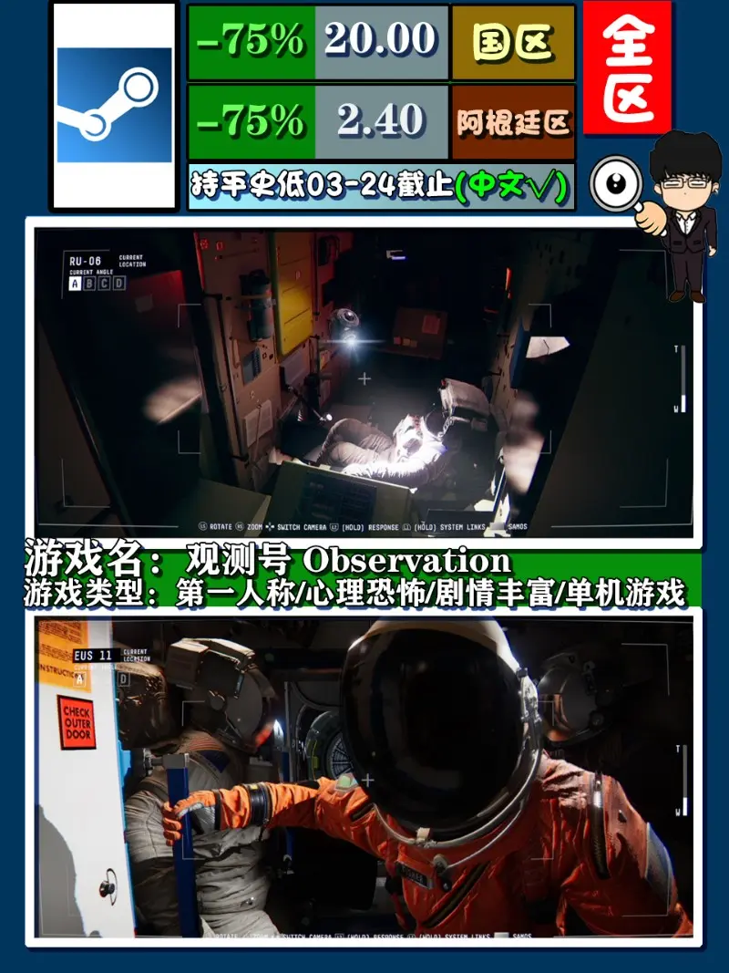 《觀測號》,為數不多的太空題材好遊戲,對喜好這類題材的玩家是個享受體驗,但對好奇想嘗試的玩家或許有點難度,除了第一人稱,人機切換的不適應外,還要面對很多常規生活中不易想到的解謎流程,想必這點會讓很多心浮氣躁的玩家反感,實在玩不下去就嘗試看看攻略吧,畢竟流程不長,基本控制在6小時內就可以通關