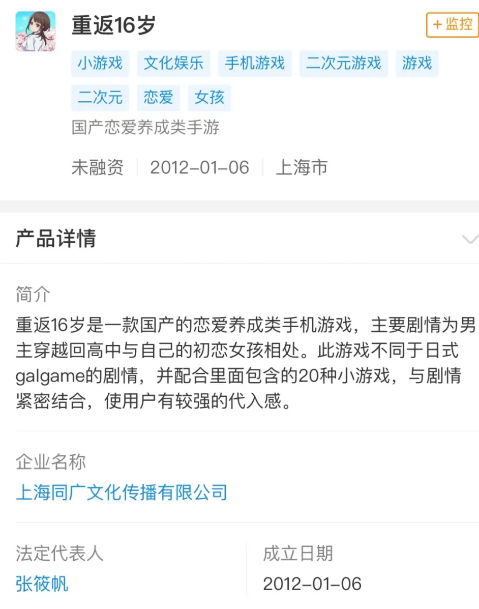 在國產美少女戀愛手遊這條細分賽道,《奇點時代》並非張筱帆的首次嘗試。據企查查,2012年,他曾立項《重返16歲》,包含20種小遊戲,遊戲與劇情緊密結合,講述男主角穿越回高中與初戀女孩相處的故事。此外,張筱帆還曾推出電臺產品“窄播”。不過可惜的是,兩家企業目前都已登出。