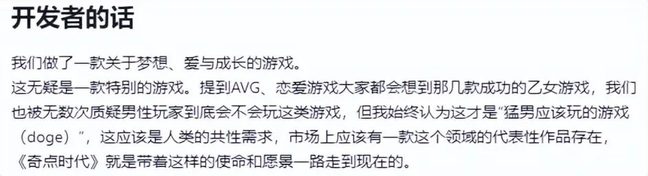 在手遊市場,男性是否也會玩戀愛遊戲?《奇點時代》認為會,在“開發者的話”中,他們將聚焦夢想與成長,而非僅是戀愛,做件特別的事。