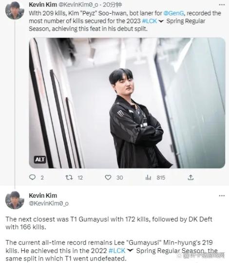 然而隨著LCK春季賽的結束,觀眾們才意識到了自己確實低估了GEN看人的眼光。因為這支隊伍跟去年一樣以積分榜第二名的身份進入了季後賽,Peyz也表現地極為成熟,打出了LCK前三AD的水準。根據最新資料統計,Peyz以單賽季209次擊殺榮膺常規賽擊殺王。