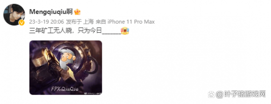 由於FPX本賽季勝率偏低,所以輔助拿MVP的情況相當少見。賽後球皇本人也釋出了微博,調侃自己是“三年礦工五人曉”。
