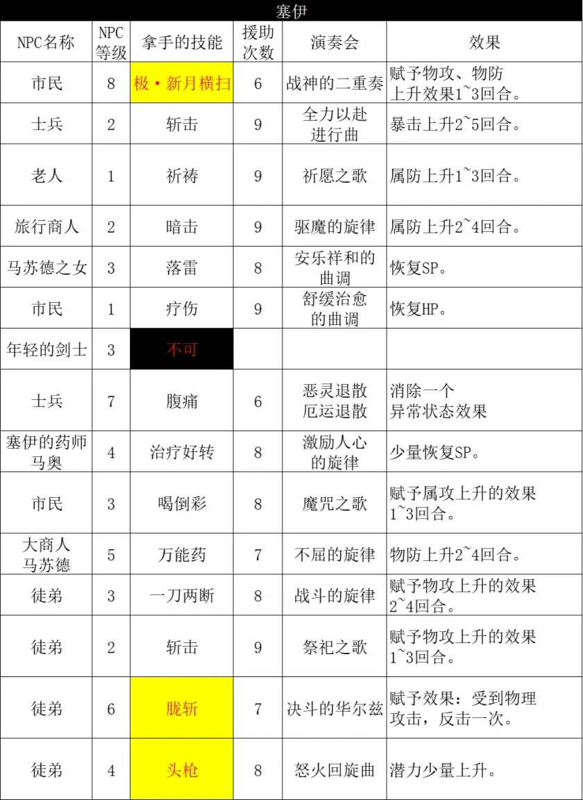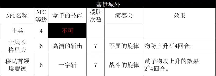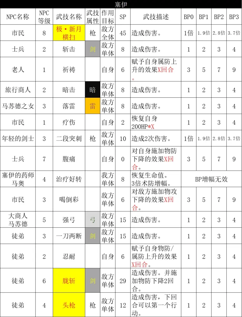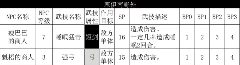 這裡補充一組塞伊南,野外NPC技能的資料。