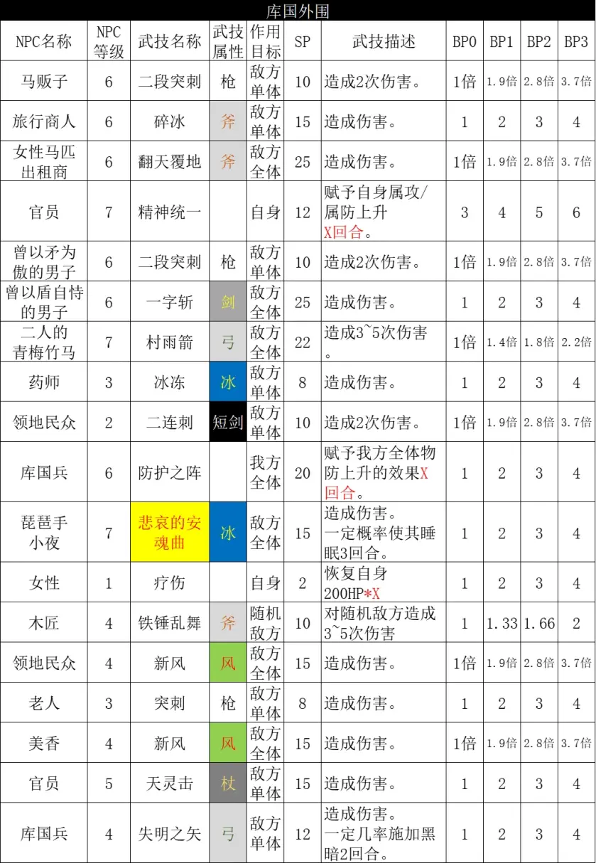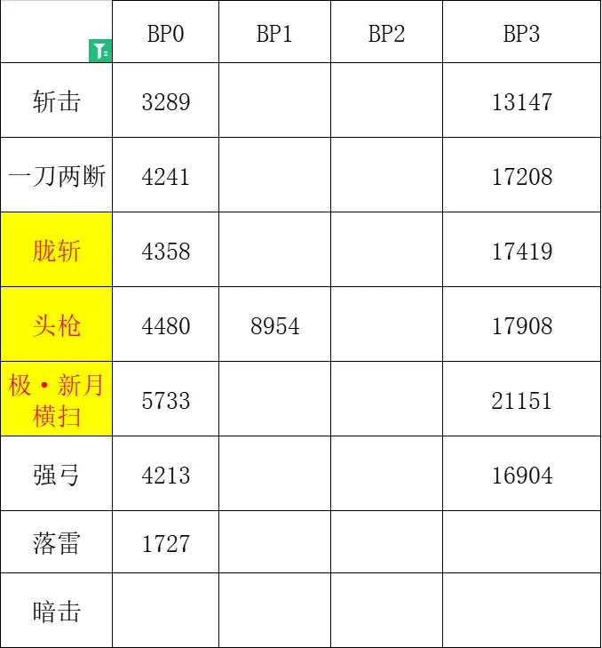 這是表格裡的傷害技能,我所測算出的資料。遊戲中,幾乎所有的消耗8SP物理技能,8SP魔法技能都是同一檔次,傷害相同的技能。而消耗15SP無特效的技能,則是他們的進階技能。