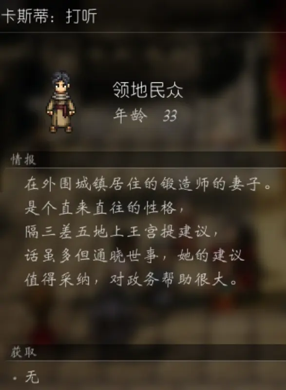 首先,我們來看庫國外圍的角色們。女性馬匹出租商很可能就是沙礫驛站商人的女兒,只是經過這次大戰之後。她的丈夫已經先一步離她而去了。