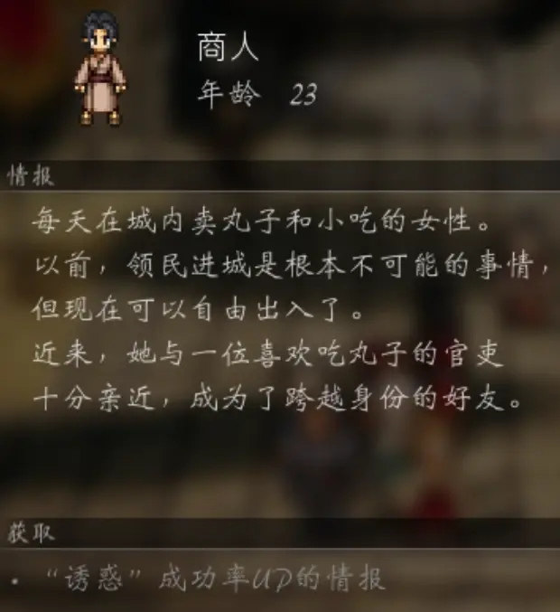 其中一位,是與官吏成為了朋友,販賣穿丸子串的年輕女性商人。