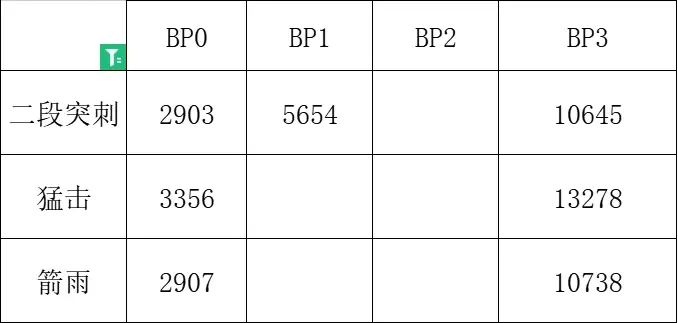 技能威力如下,其中二連刺與二段突刺為同一傷害倍率。