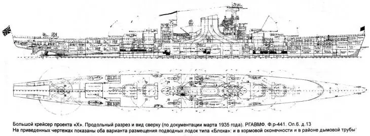 最終,它們意味著“X”計劃大型巡洋艦將是德國德國和日本Tone的火力以及日本Ooyodo的多用途功能的結合。此外,“X”專案將獲得至少兩艘由TsKBS-1設計局設計的潛水魚雷艇/小型潛艇,稱為“跳蚤” - «Блоха»。