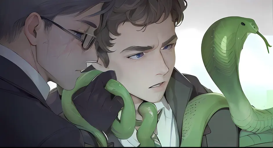 modelshoot style, (masterpiece,best quality, highres, extremely detailed CG 8k wallpaper), sharp focus, dramatic, photorealistic, 2boys, male_focus, implied_yaoi, bishounen, green cobra snake, snake around neck, under-rim_eyewear , freckles, green_necktie, snake over necktie, ((looking_at_viewer, half-closed_eyes, expressionless, pensive, closed_mouth, open_mouth, teeth to the center boy)), ((scar_on_face, scar_across_eye, lightning_scar, looking away, eyes exposed)), shiny and smooth snake skin, (blue eyes), Negative prompt: (worst quality, low quality:1.4), EasyNegative, bad_prompt_version2, ((eyes covered by eyeware)), Steps: 50, Sampler: DPM++ 2M Karras, CFG scale: 11, Seed: 1998792353, Size: 1024x556, Model hash: d8722b4a4d, Model: neverendingDreamNED_bakedVae, Denoising strength: 0.1, Clip skip: 2, ENSD: 31337, Mask blur: 4, SD upscale overlap: 64, SD upscale upscaler: R-ESRGAN 4x+ Anime6B