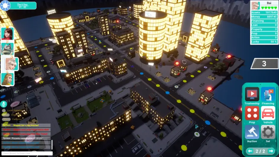 作為一款偏向戰略棋盤類的遊戲,玩家可使用區域網或全球資訊網輕鬆進行聯機,是一款能夠支援多人遊玩的類大富翁遊戲。該遊戲在保留了核心玩法的同時,進行了大膽的創新,脫離了傳統棋盤與回合制的遊玩模式,以立體的都市為基底,輔以精緻的3D模型,給玩家帶來極致的遊戲體驗。