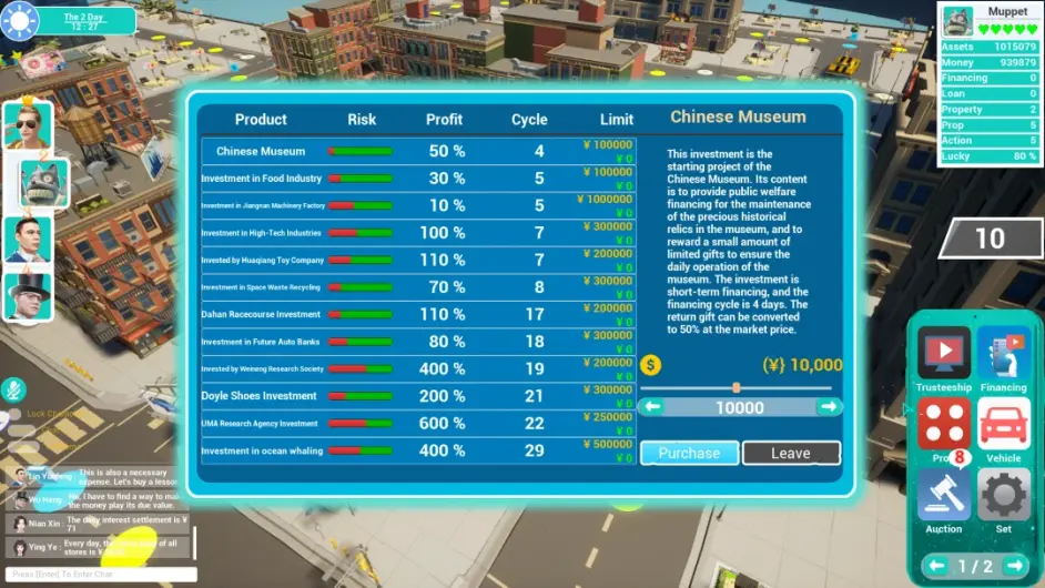 《創業大亨》中玩家可以通過購買理財產品以獲取鉅額收入,或是通過購買股票以做長遠打算,但無論是何種方式,玩家都需要承擔一定的風險,但這也可能成為遊戲末期翻盤的決定性手段。