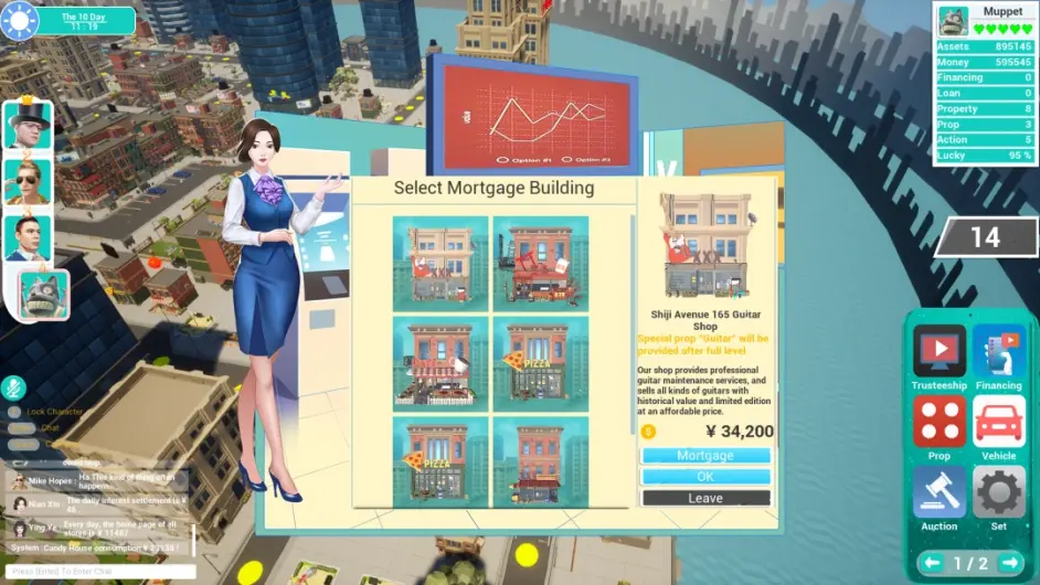 在本遊戲中,玩家將可以使用自己購買的房產進行抵押貸款,從而獲取更多的活動資金。但如果在規定時間內未還清貸款,則抵押房產將會被拍賣,成為他人的資產。