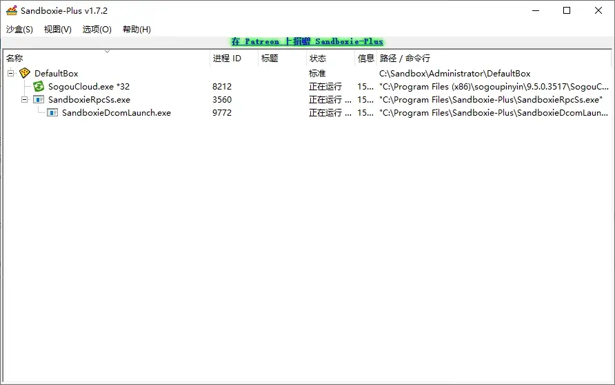 那麼迴歸正題,首先是雙開方法,一部分的Galgame直接複製到別的路徑再分別開啟就能實現雙開了,但是櫻之刻等大部分Gal是不行的。我這裡使用的是沙盒Sandboxie(虛擬機器太佔資源了),主介面如下。方法十分簡單,直接把.exe檔案拖進去就行了。