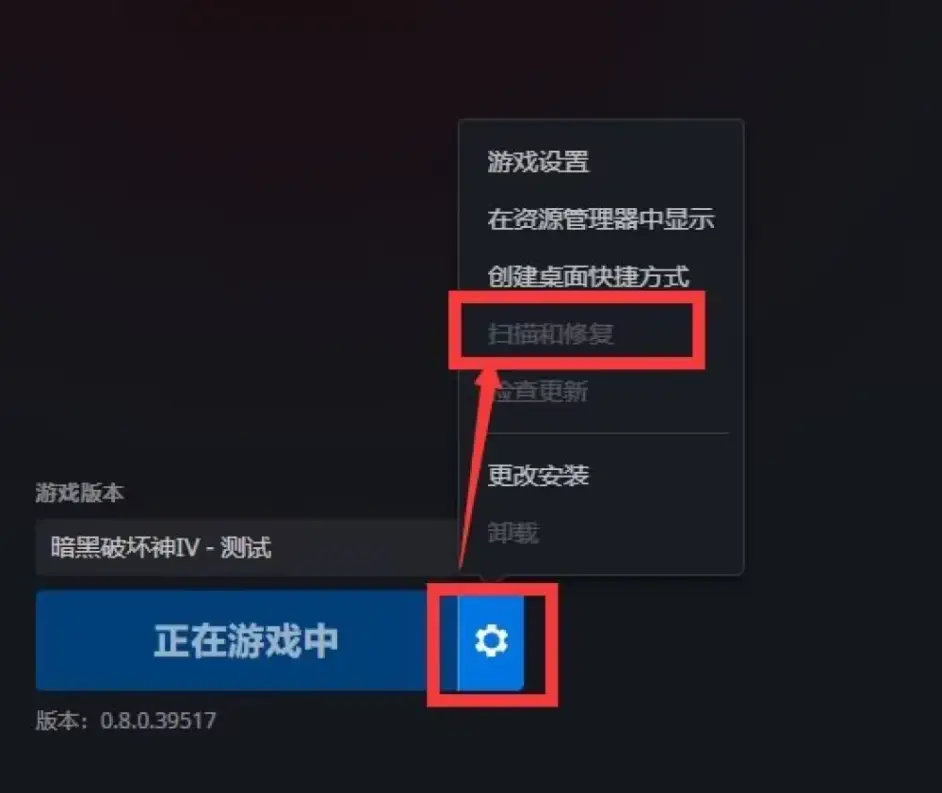 如果遇到報錯Data error(資料 誤差),我們進入遊戲設定,點選掃描和修復即可。