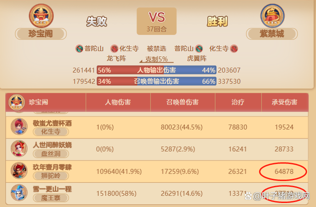 而且,從賽後資料看的話,紫禁城的進攻核心就是珍寶閣的獅駝、魔王。他們也憑藉這樣的戰術,讓單點輸出打出的傷害效果約等於兩個面傷輸出。由此可見,紫禁城的戰術方針非常到位。