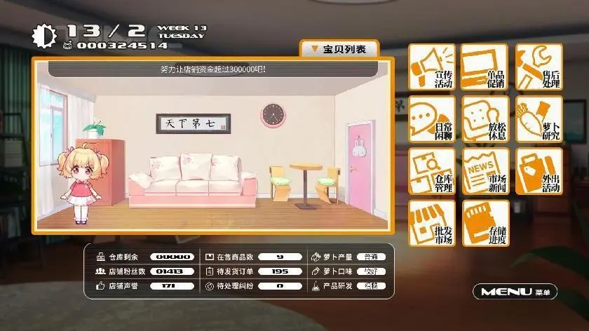 遊戲介紹:搞笑又可愛的電商經營遊戲,在這個人類和妖怪打著貿易戰的魔幻世界中,一隻不起眼的兔子精開了家網店賣著自己種的胡蘿蔔。你要幫她把店做大、讓生意更加紅火,還要解開隱藏在世界角落中的祕密。