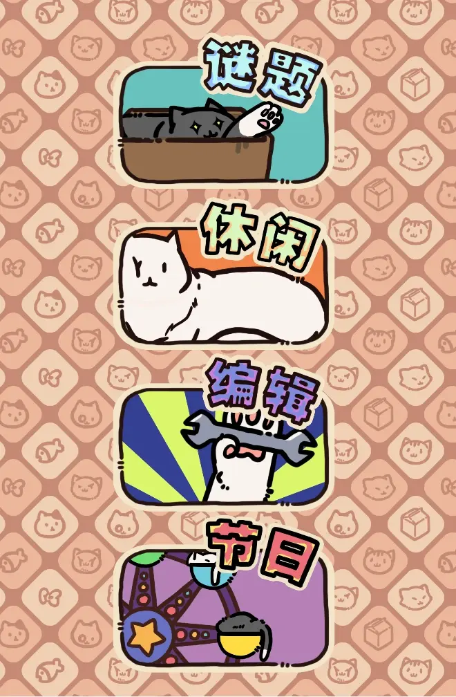 目前貓盒拼圖中共有4種玩法,分別是拼圖(本體),華容道(牛年DLC),消消樂(萬聖節DLC),疊疊樂(虎年DLC),具體的玩法如下