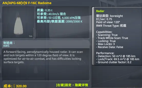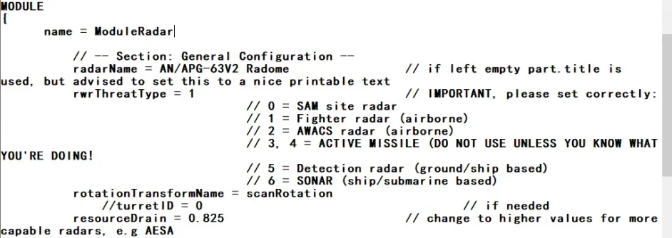 canrecieveRadarData: 是否能夠接收雷達資料,一個類似資料鏈的功能,true以後等同一個雷達資料接收器,能夠收到同陣營雷達發來的資料一定程度上能A射B導;
