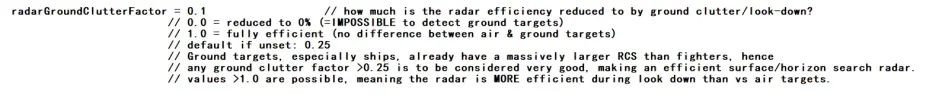 對地能力正如其寫的,這個值決定了雷達對地探測能力是對空(基準數)的多少,最大值1的時候對地掃描能力等同於對空;