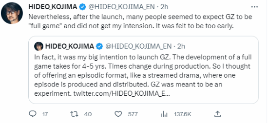 遺憾的是,大部分玩家依然把《原爆點》看做“完整遊戲”,小島也表示使用這樣的發行方式還為時過早。