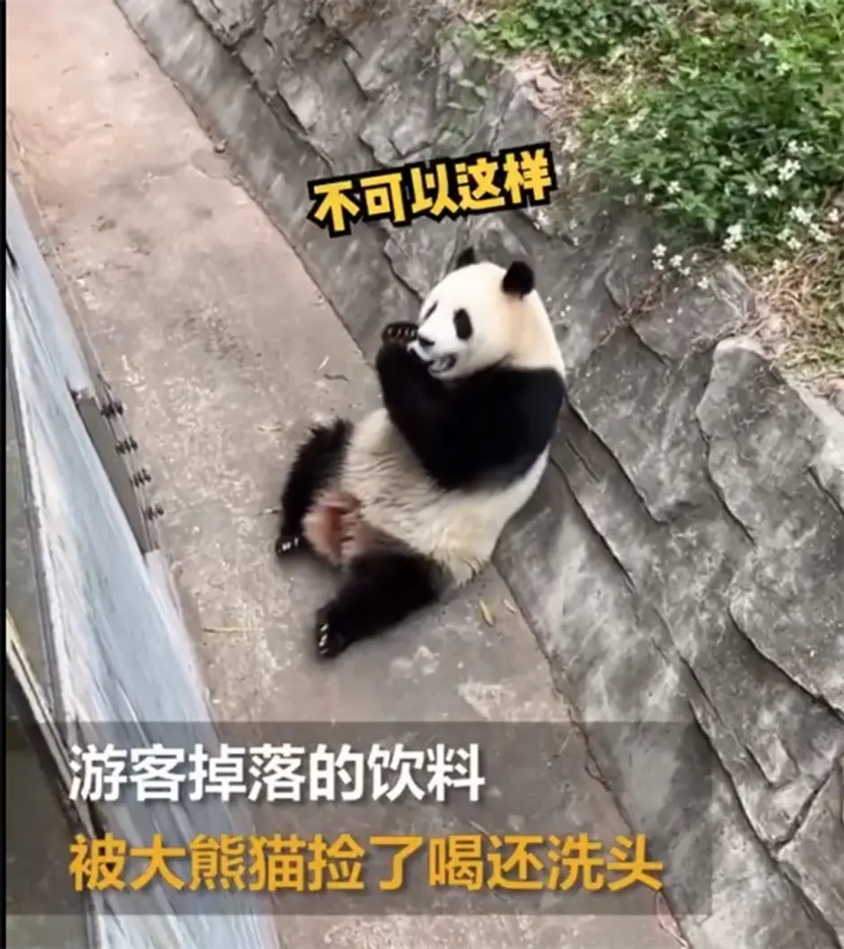 遊客飲料不慎掉落被大熊貓撿來喝 園方迴應密切留意3月12日,廣東廣州。網友發現遊客掉了一瓶飲料下去,被大熊貓雅一撿來喝了,還順便洗了個頭。遊客還在旁大喊:“不可以這樣!”