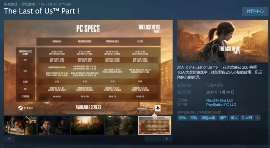 《美末RE》PC版移植或外包第三方:曾負責《神海》近期有網友發現,PlayStation官方部落格更新了《最後生還者:第一部》的PC配置圖,在左下角新增了Iron Galaxy的Logo。這或許意味著該工作室參與了移植。