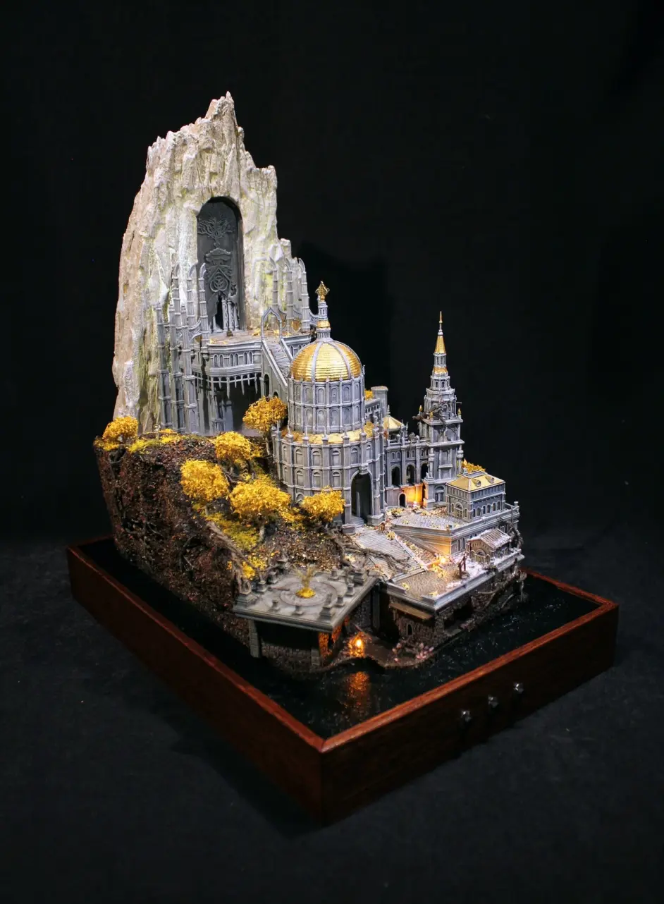 「Sky Burkson」用了難度相當高的『紙雕』搭配一些牙籤、透明樹肢、棉線、圓木底座,製作了這款微縮版“王城羅德爾”。