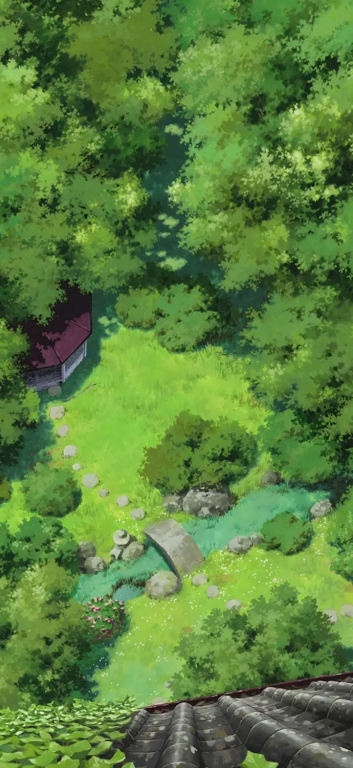 當畫面同類色比重變多,也意味著畫面往往被相近的顏色所籠罩。比方說吉卜力動畫最常見的就是一張圖內全是綠色的自然景觀,如下圖: