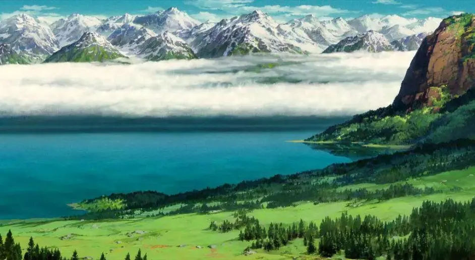 談起”吉卜力風格“,很多人腦海裡會很容易直觀地呈現出一套以藍天+綠草為組合的畫面。這一方面是吉卜力動畫的核心大多與自然相關,幾位主創都擅長植被刻畫,因此,象徵自然原生態的綠色植被與藍天成為主色調;其次,在多部作品的宣發圖裡,這套藍天+綠草的組合也非常常見,久而久之就形成了思想鋼印。