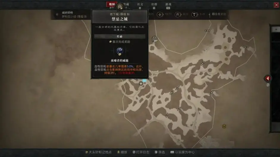 相比前作,《暗黑4》在地圖的設計上也做出了諸多改變。原本分隔的5塊區域被整合成了一張超大的開放世界地圖,除了地下城之外,你幾乎可以一眼看到當前區域內所有探索過的資訊。