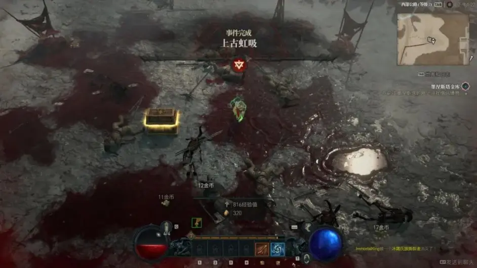 特別要提出表揚的是,《暗黑4》的打擊感得到了史詩級提升,不再是3代那種屍體浮誇的滿天飛,而是能讓玩家切身體會到什麼叫血肉橫飛。尤其是搭配上神壇新加入的塔箭新天賦,割草的爽快度直線飆升。