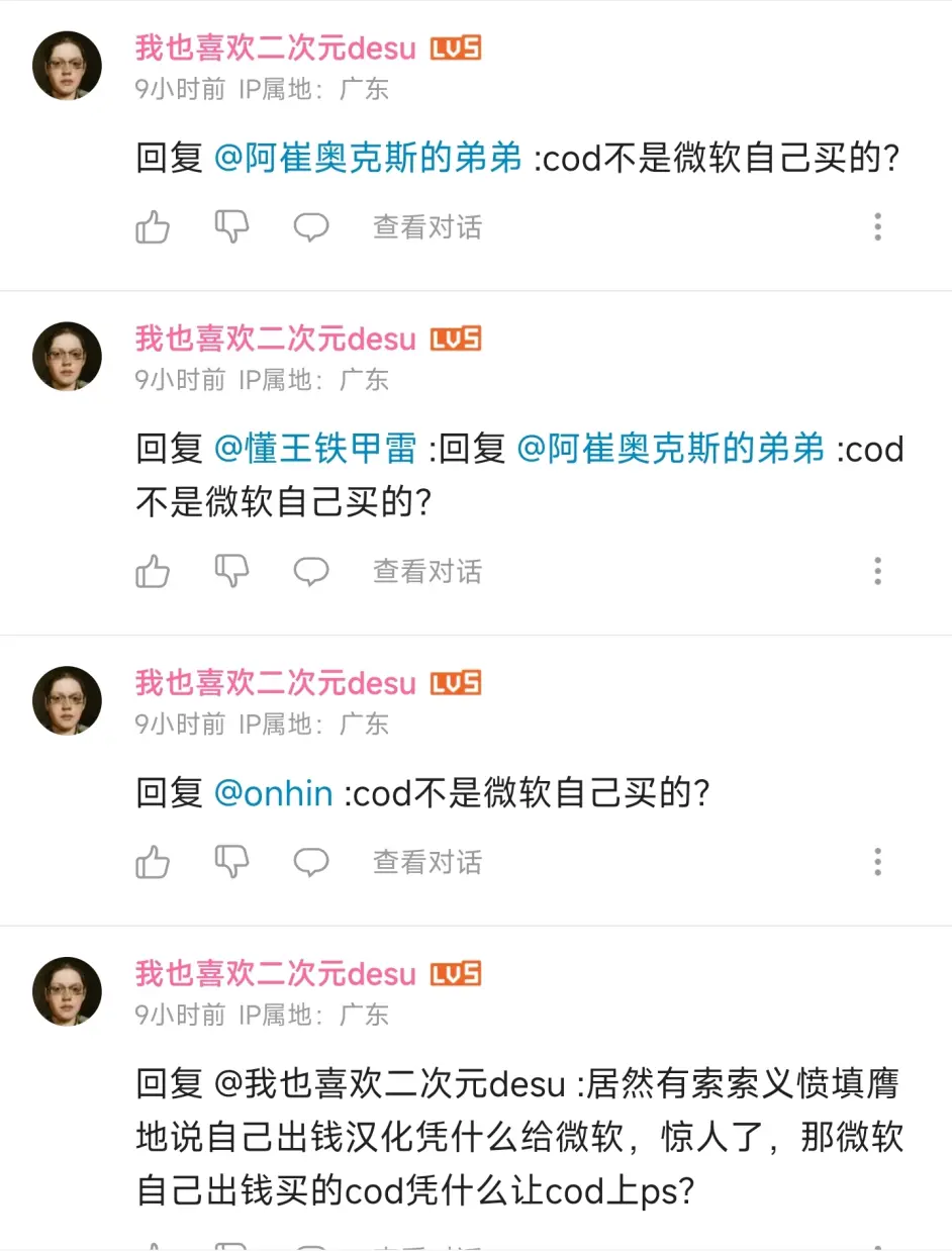 “憑什麼索尼自己漢化的遊戲不白給微軟?”瞧他那口氣,那意思索尼自己掏錢漢化的遊戲,如果不給微軟白用,那微軟就不給你出cod了!