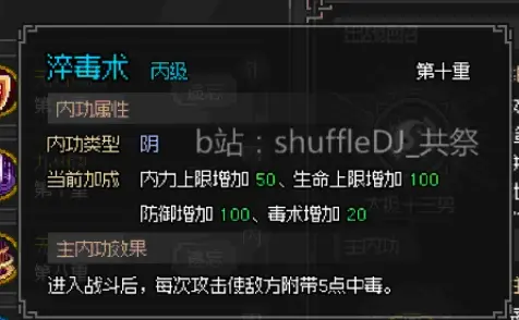 另外就是一些特別的內功是加醫術毒術的:
