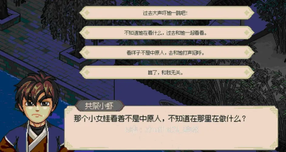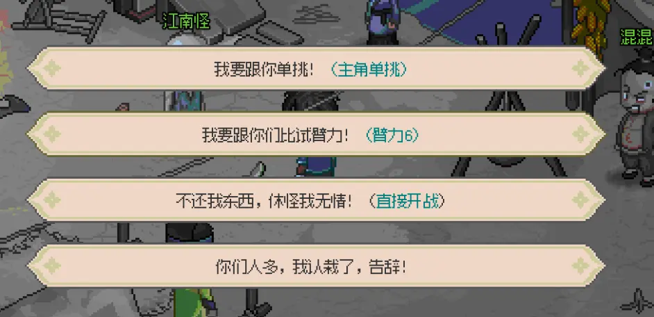 再等到晚上 就有正確選項了(選高興 就說垃圾對子嘛) 選對就進去打架