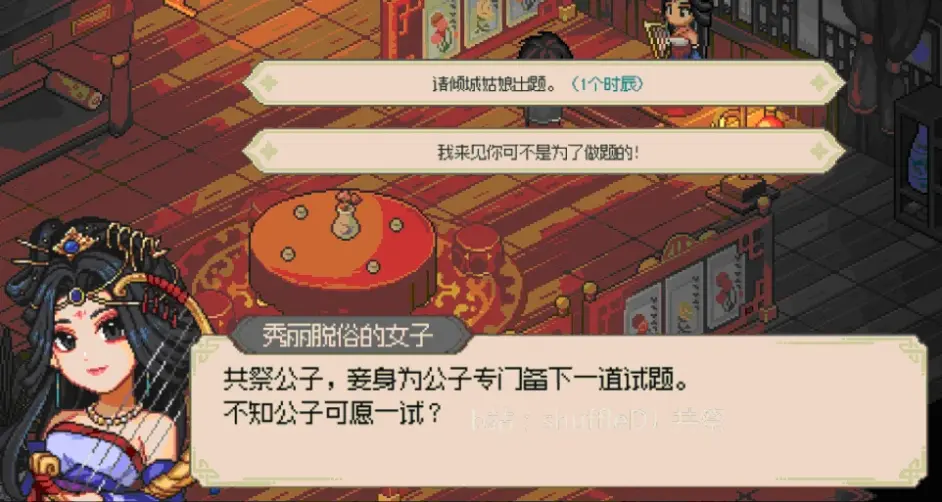 第一個選項是10000文 降花四娘5好感拿一個紫色飾品
