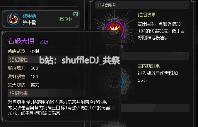 其中悟性10可以在野豬林悟道之地拿武道源流(5000經驗)悟性1可拿石破天驚拳(絕招)