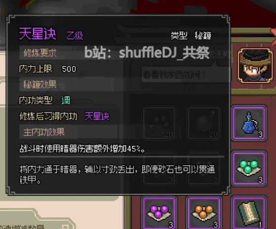 出來往前藥店郎中有6個紫色丹藥方子 桌上還一本醫術+3書 好感100給100煉藥
