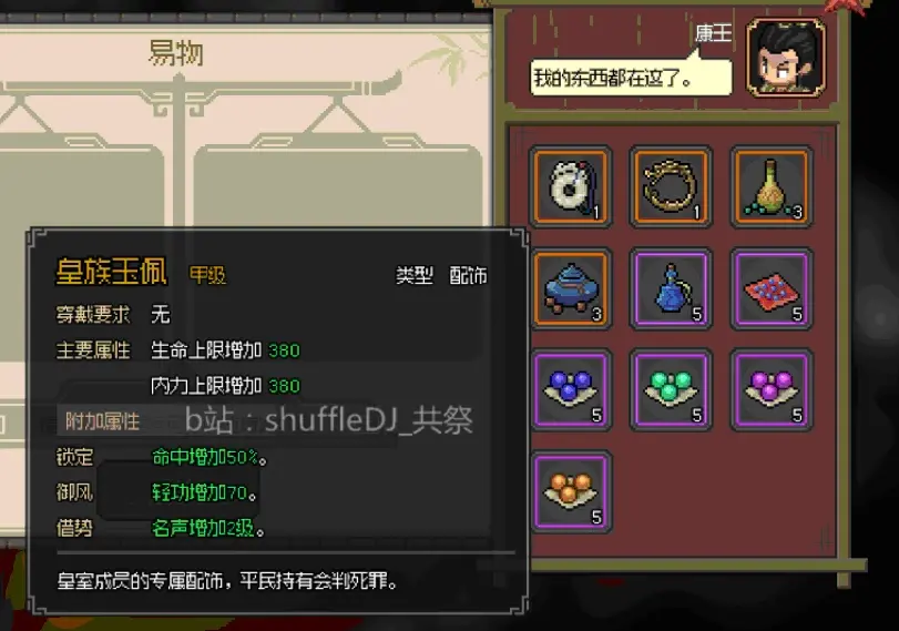 最後給了康王的龍環可以易物回來 另外他身上有個金色玉佩不錯 都拿來吧你!