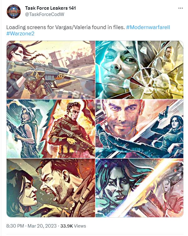 一位名為Task Force Leakers 141的爆料者在推特上發文稱,第2 季“Reloaded”更新中新增了三個操作員的佔位符,這些操作員分別是《現代戰爭2》中墨西哥特種部隊的亞歷杭德羅·瓦爾加斯、女毒梟瓦萊麗婭·加爾扎和《現代戰爭》中的亞歷克斯·凱勒。挖掘的資料揭示了三個操作員的語音和螢幕載入的藝術圖。
