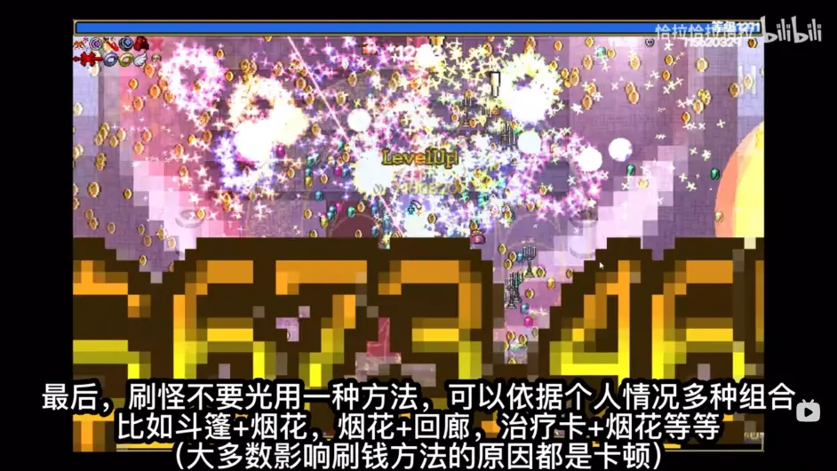 最後,刷怪不要光用一種方法,可依據個人情況多種組合,比如斗篷加煙花加回廊,治療卡加煙花等等。大多數影響刷錢方法的原因都是卡頓。